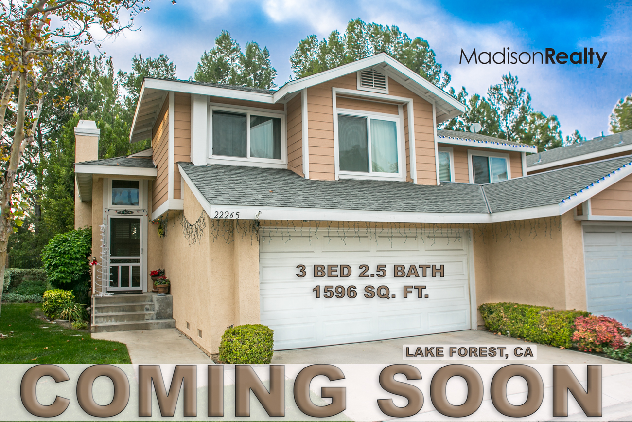 Beautiful end unit Lake Forest condo coming soon!  3 Bed 2.5 Bath, 1596 Square feet with view!
